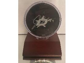 As well as an authentic Dallas Stars hockey puck autographed by Jason Robertson. He is an American professional ice hockey left winger currently playing for the Dallas Stars. Jason Robertson was chosen by the Dallas Stars in the second round (No. 39) of the 2017 NHL Draft. He made his NHL debut Feb. 13, 2020 and had an assist on the game-winning goal in the Stars' 3-2 win against the Toronto Maple Leafs.
