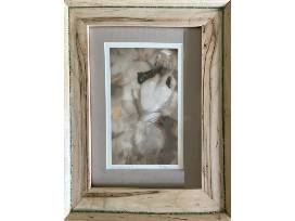 Notes: matted and framed, frame is a custom piece designed and created by Holly and Steve Burnham. It features spalted maple wood with crushed chrysocolla and turquoise stones.