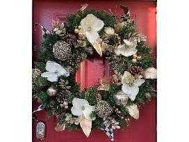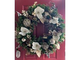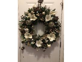 Decorate your Front Door this Holiday with this beautiful Wreath decorated elegantly with cream floral and gold accents.