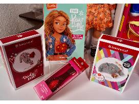 Your little girl will delight in receiving this very popular curly haired American Girl Doll with 6 additional outfits. Evette is a blondish-brownish new model. Includes a Holiday dress and PJ's outfits, 1 Vintage Print Dress and a French Pinafore dress, a riding outfit and a play outfit with a scooter. She also includes a Doll Carrier and brush.