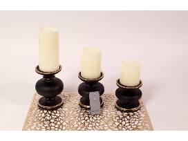 3 Black Gold Rimmed Candle Stands, 4"h x 4"w, 5"h x 4"w, 6"h x 4"w