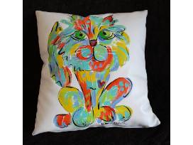 Hand Painted onto white vinyl leather pillow filled with hypoallergenic cotton.