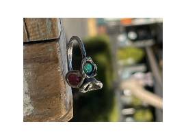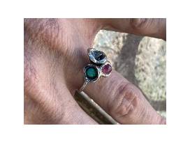 Opal/tourmaline Flower ring Lost wax cast silver flower ring with Opal and pink tourmaline Great for stacking with other bands Fits size 7 1/2-8