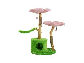 Want a cat tree that complements your home while giving your cat a place to rest? This stunning, lifelike Cherry Blossom Cat Tree is the one you are looking for. Inspired by the natural beauty of the Cherry Blossom Tree, this modern floral design is hand-made with real natural, treated wood branches, two cozy cherry blossom-designed flower cat beds, and one leaf design perch. It has an enclosed, private condo on the ground floor and two dangly pom-pom toys attached for playtime fun.