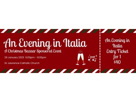 16MUST fill out information ticket in the auction room. There will be a matching ticket for you to take with event information on it.Enjoy an evening of Italian dining and music on Thursday, January 26th from 6pm-8pm at. St. Lawrence Catholic Church.