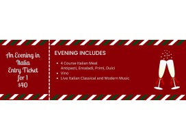 Tickets include: Antipasti e Vino (appetizers and wine) with dinner, desserts, and live music.