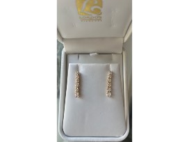 One pair of 14k yellow gold earrings each containing 5 brilliant cut diamonds graduating in size weighing 1.00/1.00 total weight, H in color, VS2-SI1 in clarity.