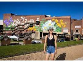 Ouizi is known for her large-scale botanical murals, like the one on the Civic's south-facing wall on S. Main St. Her Civic mural drew its inspiration from the flora and fauna of the Cuyahoga Valley National Park.