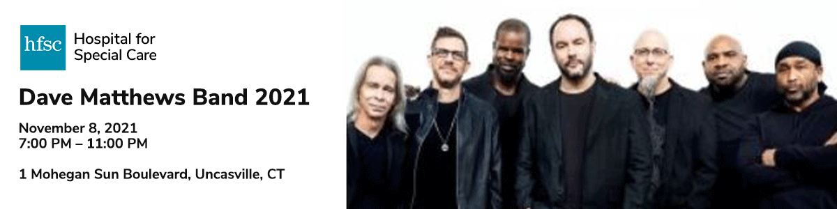 ... to an opportunity to enjoy exclusive admission to the Mohegan Tribe's own Earth Suite at the Mohegan Sun Arena, tasty treats provided by Energy Resources and great company in a private, safe and luxurious setting with your favorite Hospital for Special Care friends. Experience the Dave Matthews Band in style - and support a great cause! All proceeds benefit Hospital for Special Care's mission to rebuild lives.