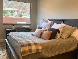 Stunning, modern yet cozy Kanab, UT home nestled in Kanab's beautiful La Estancia neighborhood. This home boasts 3 bedrooms 2 baths, a fully equipped kitchen with stainless steel appliances, indoor laundry room with load washer & dryer, garage and beautiful backyard patio with outdoor furniture and panoramic views!