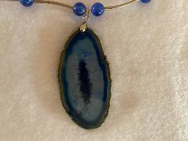 0This is a stunning pendant on a necklace with matching blue beads separated by silver colored pieces. The pendant measures 2 5/8" in height and 1 3/8" in width