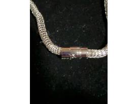 0This unique necklace and bracelet are made of silver mesh. It has a magnetic clash that makes for very easy attachment