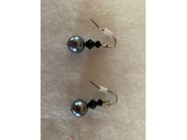 The earrings match the silver and black beads.