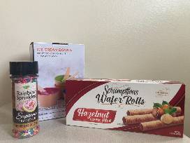 - Cute carrying basket to hold your ice cream dishes and toppings