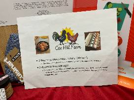 - Two frozen, pasture-raised chickens and two dozen free-range eggs from Cox Hill Farm