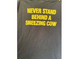 - an XL Don't Stand Behind a Sneezing Cow black t-shirt