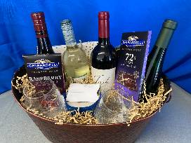 Treat yourself and some friends to a delicious wine and chocolate experience. Basket includes: