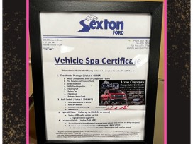 This FABULOUS Vehicle Spa Certificate includes much more than the average "Tune-Up"! Not only will you receive the works package (includes: oil change, tire rotation & pressure check, brake inspection, multi-point inspection, fluid top-off, battery test, filter check, AND belts and hoses check), it ALSO includes a FULL detail, a loaner vehicle, AND a top off of your gas tank!!
