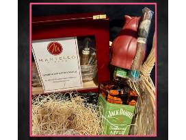 This package is for the cigar aficionado in your life. It comes with 6 cigars, 2 bottles of Jack Daniels Whiskey, 2 bro rose bottle toppers, a humidor, and a $50 gift card to The Drawing Room.