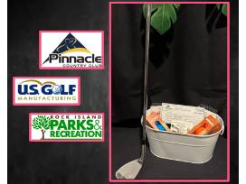 Designed to captivate the hearts of golf aficionados. This basket features a perfect blend of golf essentials, promising a delightful experience for any golf enthusiast. You will get the chance to practice your skills at Pinnacle and Saukie or Highland golf course, a foursome at each. To upgrade your gear, we have golf balls, socks, and a new club.