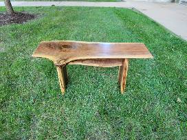 Upscale with bit of rustic charm, this gorgeous walnut bench transforms your indoor or outdoor space into a stylish mountain retreat. With a live edge, knot detailing and natural finish, the warmth and beauty of the wood shines through. Handcrafted by CBC alum Jim Vogelsang ('58). 41"L.