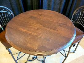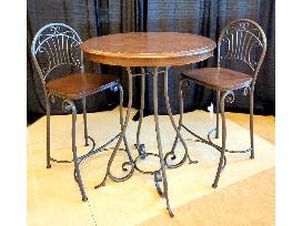 Freshly sanded, stained and painted, this bistro table and chairs have been given a total refresh. Imagine how the set could reinvigorate your space-challenged rooms. We can picture it so many ways? a morning coffee spot, sunnyside breakfast place, man cave cocktail table? the options are endless. 36" DIA. x 42" H ; 29" seat height.