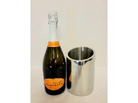 Nambe Tilt Wine Chiller with a bottle of Presto Prosecco DOC Brut