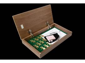 Take your game night to a new level of class. This is the highest quality, handcrafted horse racing game available. The walnut finish is Across the Board's premier horse race game that comes with a walnut veneer playing surface and solid hardwood game base, which doubles as a storage compartment. Game includes cards, dice, and 11 numbered metal horses.