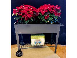 No need to crouch or bend. Back-saving, wheeled outdoor elevated garden bed makes easy work of gardening. Perfect for a mini-flowerbed, herb garden or homegrown vegetables ( or even a bar cart). Filled with poinsettias for seasonal cheer. With 13-piece heavy-duty gardening tools in durable storage tote bag.
