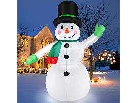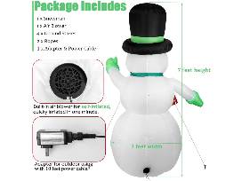 7' Inflatable Snowman outdoor yard decor self-inflates in only one minute! Equipped with LED lights, a powerful built-in fan and 10' long cord. Weatherproof design is perfect for your holiday lawn or patio. Easy to deflate for space-saving storage.