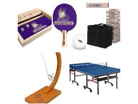 Some call it pong. Some call it table tennis. We call it GAME. ON. This pro-grade table tennis table is competition-ready, so grab your sweatbands and let's do this. Play teams, one-on-one or single with the playback option. Includes 4 paddles and 24 balls adorned with the CBC logo, courtesy of Victory Tailgate. Lockable casters make it easy to store or roll the epic battle out to the back patio. Victory Tower Stacking Game (think Jenga, but giant-sized) is also the height of fun for backyard parties. 54 solid pine pieces stack up to 5' high before tumbling.