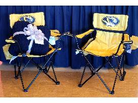 Just right for your Tiger Tailgate! (2) Missouri Tigers Game Changer chairs from Rawlings are fold-and-go easy for game days and campouts. The hand-braided, snuggly yarn blanket is the perfect cuddle for cold outings.