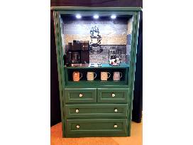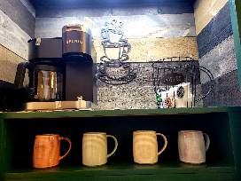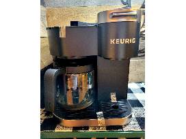Consider this your little station of happiness. A gorgeous Thomasville Coffee Bar is a welcoming beacon for those mornings when You. Just. Need. Coffee. So many charming details abound... from the natural wood interior to the gorgeous spruce green exterior to the decorative metal coffee cup filigree to the whimsical drawer pulls... you really need to see it in person. With a combined coffee pot and K-cup, the Keurig K-Duo is the perfect blend of old-school brewed joe for your favorite roast or the easy, I need it now, simplicity of the K-cup. Coffee mugs round out the collection.