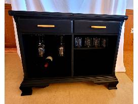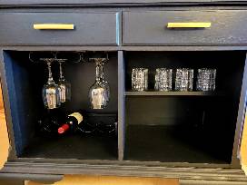 With mounted racks to house your glassware and favorite wines, this beautiful piece of furniture's top extends on either side to add extra space for your snacks and spirits. After the party is over, simply close up the top for a smaller silhouette. Includes: