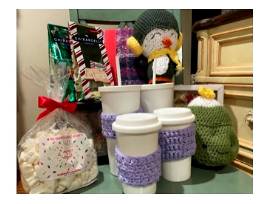 Two super-cute hand-crocheted figures (a penguin and a tree) help complete this delightful, winter-themed package.