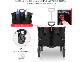 VIVOHOME Heavy Duty 176 Lbs Capacity Collapsible Folding Outdoor Utility Wagon Patio Garden Cart with 2 Drink Holders and Wheels for Camping and Picnic
