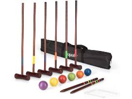ropoda Six-Player Deluxe Croquet Set with Wooden Mallets, Colored Balls, Vintage Style, Sturdy Carrying Bag
