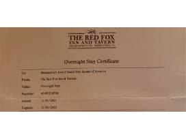 Certificate for one-night stay at historic Red Fox Inn in Middleburg.