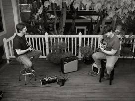 About Moon and Bike: "Moon and Bike is an instrumental guitar duo based in Portland, Oregon. Their use of acoustic and electric guitars to create lush, melodic soundscapes is at the core of their sound, which can be hard to pin down to a single genre. Some of their influences include Daniel Lanois, Michael Hedges, Robin Guthrie of Cocteau Twins, and Peter Buck of REM.