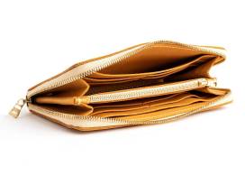 This Accordion Zip Wallet is a sophisticated do-everything wallet. Crafted in sturdy leather with a smooth gliding brushed gold zipper, this expandable design unzips to reveal a spacious interior. The Accordion Zip Wallet is perfectly organized with six card slots, two large pockets for organizing cash or receipts, plus a zipper pocket for coins!