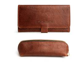 You're bidding on a premium Tri-Fold Wallet in nutmeg and a Large Pencil Case in nutmeg.