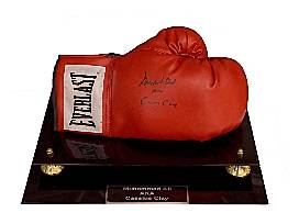 Before he was MUHAMMAD ALI he was CASSIUS CLAY - and he signed this glove with BOTH NAMES. A rare item!