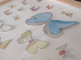 Maryann Lopez has been working out of ECF Art Centers' Westside studio since 2017. Mary Ann is known for her delicate, wobbly line work and playful use of watercolor. Her vibrant personality and sunny disposition seem to be reflected in the pure expressions of joy she creates with her work. Her art-making process involves using found images to create drawings, mixed-media paintings, and screen-printed fashion items.