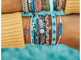 Pura Vida bracelets are handmade in Costa Rica from waxed string. They are one-size-fits-all and can be adjusted to fit any size wrist.