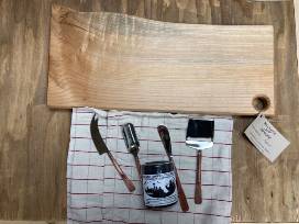 In the cutting board seen here the left side is treated and the right side untreated, to demonstrate the hydrating effect of this incredible product.