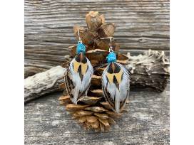 This year's donation to the Congressional Sportsmen's Foundation features a pair of earrings and matching pendant with Sterling Silver hooks and Turquoise beads. The feathers are from a sage grouse, sharp-tailed grouse, and a ring-necked pheasant.