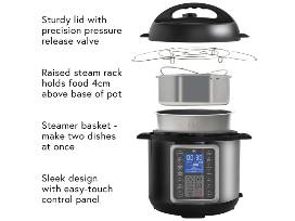 1Make meals in minutes with the Mealthy MultiPot. The MultiPot has everything you need in one beautiful and convenient appliance: pressure cooker, slow cooker, steamer, rice cooker, yogurt maker, sauté pan, and much more! The Mealthy MultiPot is 100% BPA-Free and made of the highest quality materials including professional-grade SUS304 stainless steel and a brilliant LCD screen.