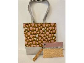 Handmade bag and matching clutch by MEZ Designs in the perfect muted color palette for spring & summer. Set is made from cork and vegan leather, and all materials were purchased at Sallie Tomato, a women-owned small business in Fox Lake, WI. Cork fabric is sustainable, durable, ecofriendly and hypoallergenic. Also included is the cutest "be kind" sticker for your water bottle, journal, wherever!