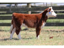 They might be small but they are mighty! This little heifer has continued to get better and better with each day on feed! She is fancy and has a long, clean and elegant front end that is hard to find in the Miniature Hereford world. This ultra- feminine female will only get better and she continues to fill out and grow. She is one of the youngest heifers in our sale but we really have high hopes for this young heifer!