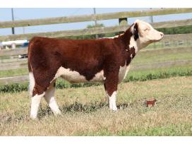 This Calf is bomb proof and ready for a first timer! We know this little bull calf is green but we see a world of potential for this guy! He is the youngest bull calf offered in our sale this year but the quality is sure not lacking! He weaned off his mom's side at the Texas Hereford State Show and has not looked back he continues to get better each and every day. Oh, and we forgot to mention this cool little guy is polled! These boys were kept intact to give the buyers more options